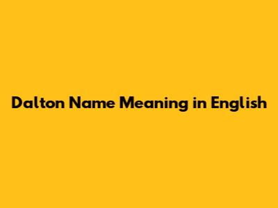 Dalton: What Does This Name Really Mean?