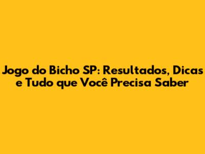 Jogo Do Bicho SP: Resultados De Hoje E Dicas