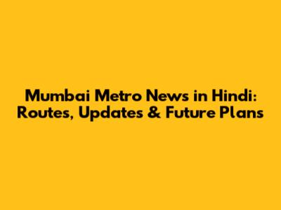 Mumbai Metro News In Hindi: Routes, Updates & Future Plans
