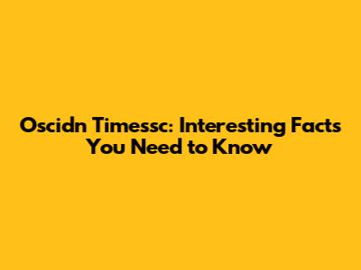 Oscidn Timessc: Interesting Facts You Need To Know