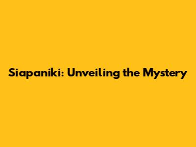 Siapaniki: All You Need To Know
