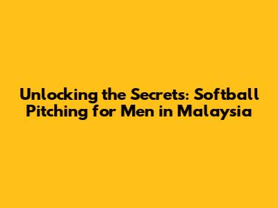 Unlocking The Secrets: Softball Pitching For Men In Malaysia